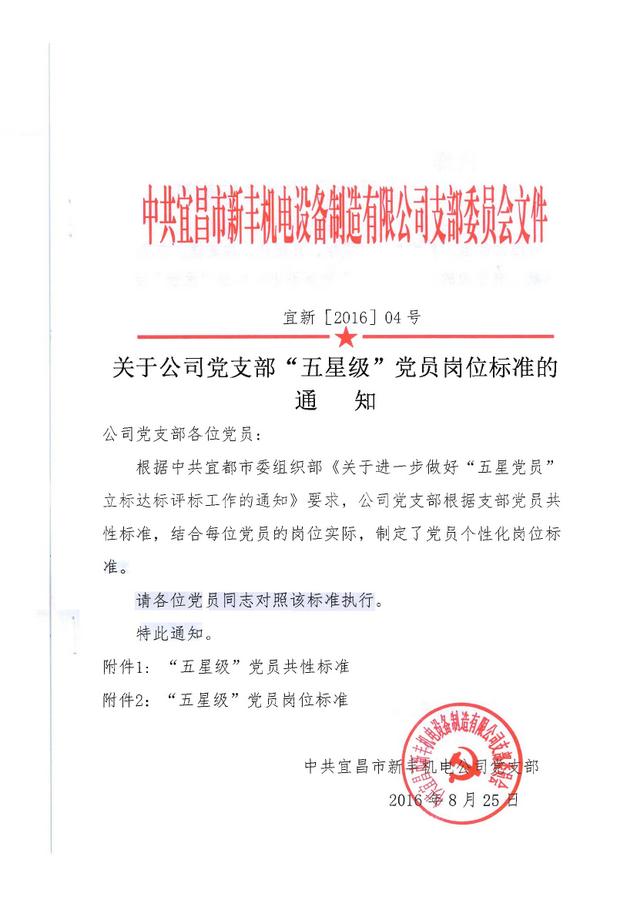 關(guān)于公司黨支部“五星級(jí)”黨員崗位標(biāo)準(zhǔn)的通知